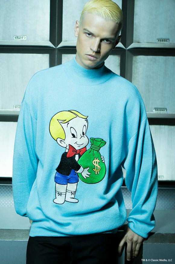 Joyrich, which brands itself as a label for “casual-rich” people, is using Richie Rich as a mascot for its “Beverly Hills-inspired” fall/winter 2014 collection. The company has done numerous cartoon collabs in the past featuring Disney characters, The Simpson and Betty Boop. The Richie Rich collection retails at prices that only the poor little rich boy himself could afford: tanktops cost $62, hats $70, wallets $110, sweatshirts $158, and backpacks $200. To see what your neighborhood a$$hole will be wearing this fall, visit the Joyrich website.
