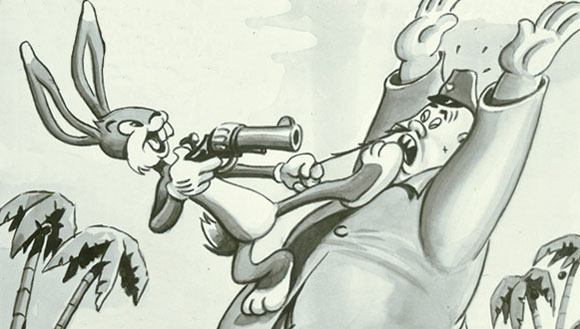 Courtesy of some quick research on Mike’s Amazing World website, I created a gallery of 15 comics covers from the war years (thumbnails below) – featuring popular characters from Disney, Warner Bros., Terrytoons and Walter Lantz as well as some lesser known rabbits from Fawcett and Timely. Characters from from MGM, Famous Studios and Screen Gems also did their bit – on screen.