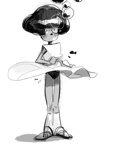 April Liu is a second year animation student at CalArts. Her blog is a mixture of personal and school work with drawings and animated studies from projects in progress, such as a short about a fellow with a sprout growing from the top of his head. According to her blog posts, April may have abandoned this film having concluded that she wants to move on to a new film that will challenge her more.