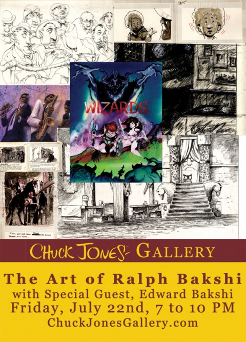 On Friday, July 22 nd , the Gallery will host an open house and reception for the Art of Ralph Bakshi , with his son, animation director and producer, Edward, as our special guest, from 7 to 10 PM. Bakshi, the producer, director, writer and animator of such ground-breaking animated films as Fritz the Cat, Coonskins, Wizards, and The Lord of the Rings is regarded by critics and collectors as one of the modern giants of animation. The exhibition will feature not only original production art from a variety of his films, but also his most recent mixed media constructions, drawings and paintings. Ralph Bakshi will be signing dedication cards for artwork purchased during the exhibition.