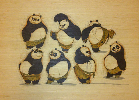 A highlight of the new Kung Fu Panda 2 art portfolio is a unique and impressive multi-image portrait (11” x 17”) of the film’s central character Po (the Panda Bear). The giclée imagery has been printed directly onto a bamboo veneer. Created using archival water-based inks, the bamboo portrait is a completely recyclable substrate making it a 100% green fine art product. The hand numbered, limited edition portrait of only 50 features a framed SRP of $750.