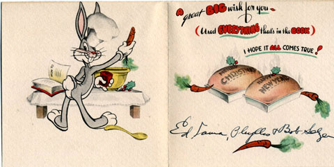 What’s Cookin’ Doc? Another classic card from Eddie Selzer and family. Click the image below to see enlarged to full size.
