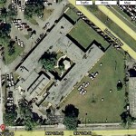 Photo’s below (click thumbnails to enlarge) shows the Miami Police Grapeland Heights Substation as it appears today (left), an overhead veiw via Google Maps (center), and a diagram of the original Fleischer Studio offices (right).