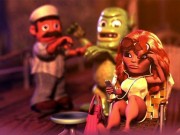 In the video for the band Kiwi Hug, icky green snail creatures try to devour the band members.
