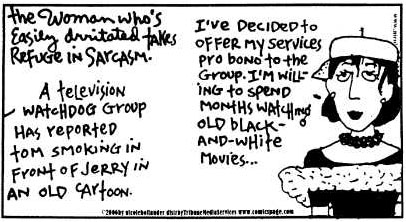 Last month the British press made a stink about cigarette smoking in old Tom & Jerry cartoons. Nicole Hollander even made note of it in her syndicated comic strip Sylvia last Tuesday (excerpt below, see the entire strip here). Now Turner Entertainment is planning to cut those smoking scenes out of all their Tom & Jerry TV prints. Never mind that these cartoons weren’t aimed at kids in the first place, and produced in a time when a cigarette, cigar or pipe in your mouth was as common as a cup of Starbucks in your hand today. I’ve never smoked myself and I am very much against against big tobacco – but I believe it is my right to watch cartoon characters smoke if I want to.On Saturday October 28th, at the AFI in Hollywood, Asifa Hollywood is hosting a special showing of SMOKIN’ TOONS. A special blend of cartoons from the 1940s and 50s, hosted by yours truly Jerry Beck, will screen at 3pm. No smoking permited on the AFI campus, but I guarantee your lungs will ache with laughter! Join us!