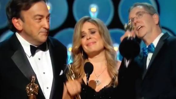 At the end of Jennifer Lee and Chris Buck’s acceptance speech for “Frozen,” a clearly emotional Chris Buck said, “And finally we’d like to dedicate this to our guardian angel, that’s my son Ryder Buck. Thank you, Ryder.”