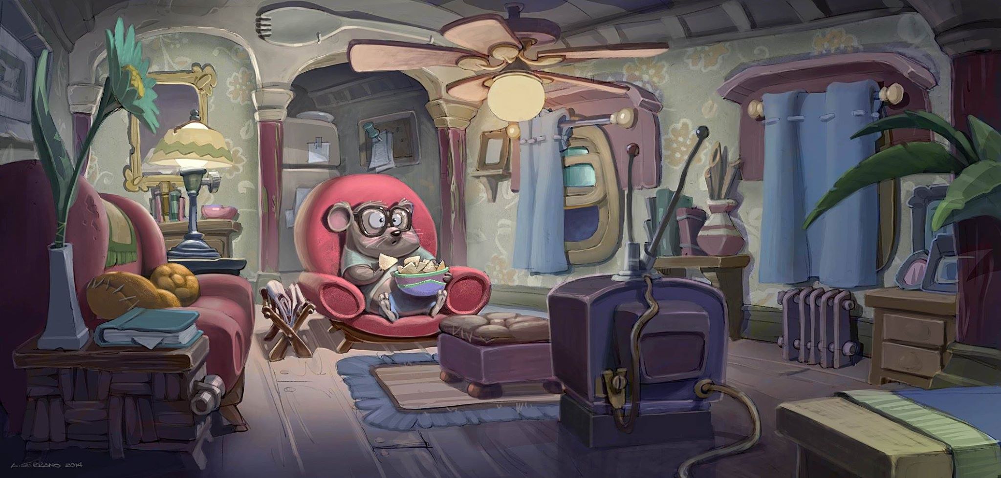 “The most valuable piece of artistic advice I have received was from Franc Reyes, a co-layout artist, when I’d just started working at Disney Feature Animation Florida studio. He said, ‘Always remember we’re making cartoons.’ It was just a casual quip but with an important underlying message for me–not to lose the fun in what I do. I always give 101% in everything that I work on. But to balance my over-thinking, over-drawing, and over-rationalizing tendencies is the decision to keep it fun for both of us — the creators and the audience. Fun channels the passion in my artwork.”