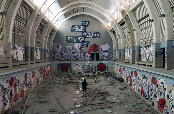 This unused swimming pool was improved with artwork by Horfée and Ken Sortais: