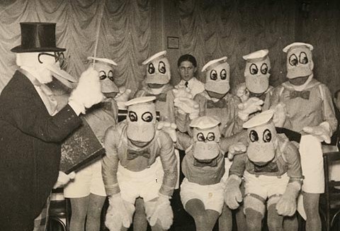 I’ve been super busy this week, but had to share this image of a Donald Duck brigade from 1930s Serbia. Who were the people under those masks and what were they thinking? The world will never know. More disturbing imagery can be found on the Disney History blog.