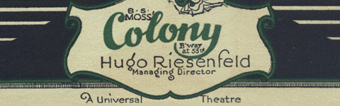 I was rummaging through my movie files over the weekend and I came across this four page program for the Colony Theatre from 1927, a little more over a year before Mickey’s gala premiere. At the risk of going slightly OT, I thought I’d post this (below) for my friends J.B. Kaufman, Leonard Maltin, David Gerstein, Michael Barrier and the six other people I know who might find this fascinating.