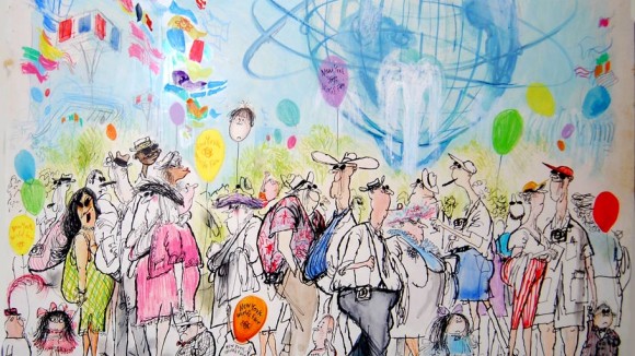 A taste of Searle’s vast body of work is currently on display at the Cartoon Art Museum’s new exhibit, “Searle in America.” The exhibit, which focuses on his reportage assignments in the United States was organized by Pixar story artist and Searle Tribute blog curator Matt Jones. It will be on display through March 30, 2014: