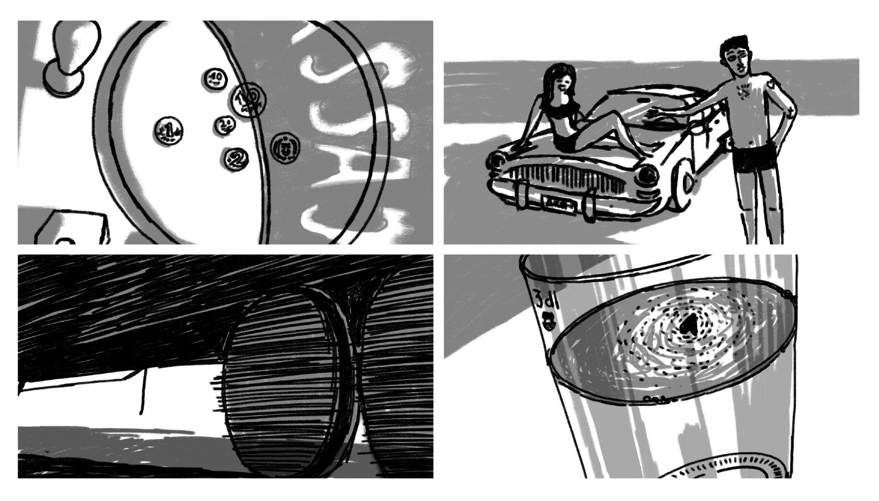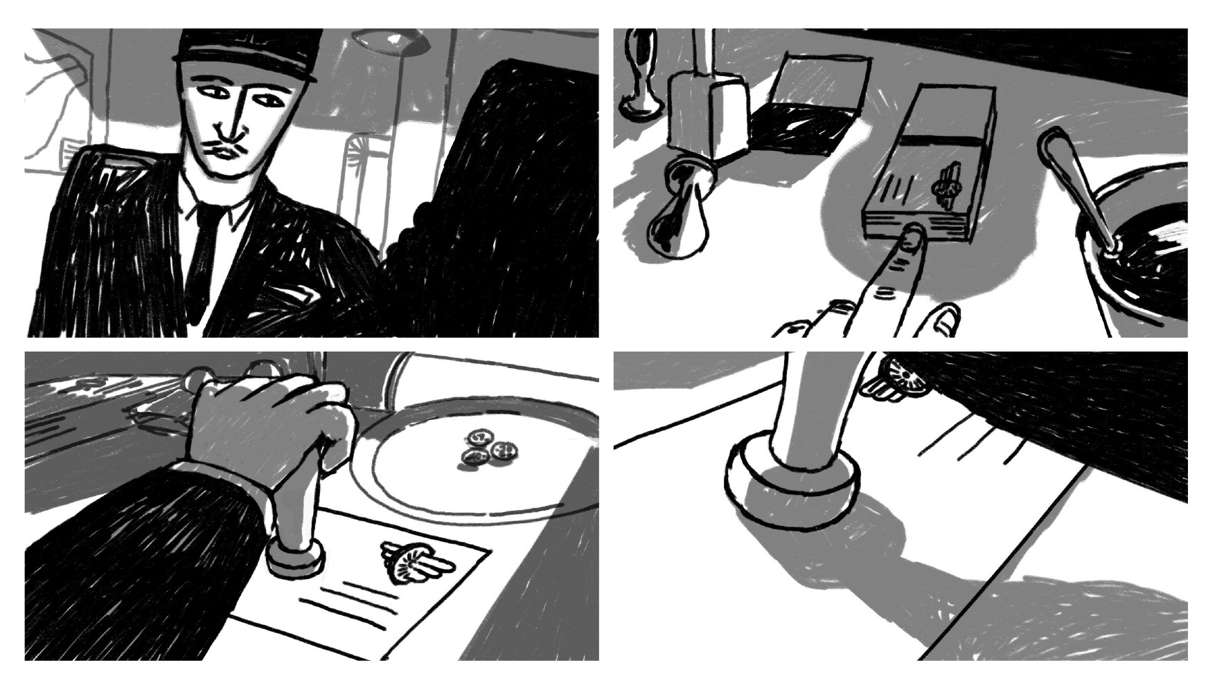 The storyboarding process is not different when directing an animated documentary film. Image cropping and viewpoints should be designed in the same way. Even in the case of a documentary, the edited dialog and interviews must be prepared in advance, and the storyboard drawings are prepared for this cut sound.