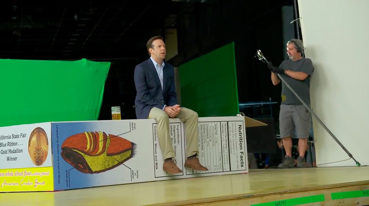“For instance,” said Price, “in the case of Dave (Jason Sudeikis) sitting on the cracker box when he’s talking to Paul (Matt Damon) in the kitchen, we built an oversized box for Jason to sit on. That helped him understand where he was in the scene and helped us line up the camera and also grounded Alexander in terms of understanding the composition. Another thing it gave us was accurate lighting. If the actor was in close proximity to something like the cracker box, then the oversized set gave us the proper bounce light and helped integrate lighting into the actual scene.”