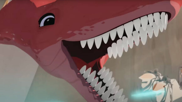 As we said when the teaser came out, Nimona will look aesthetically familiar to fans of Patrick Osborne’s Oscar-winning short film Feast. Osborne was the original director of Nimona, back when the project was at Blue Sky Studios before that studio was shuttered by Disney following the 20th Century Fox acquisition.