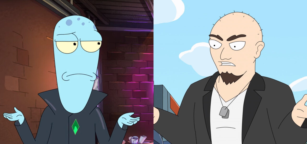Pictured at top: Roialnd characters Korvo (Solar Opposites) and Chad Wagon (Koala Man)