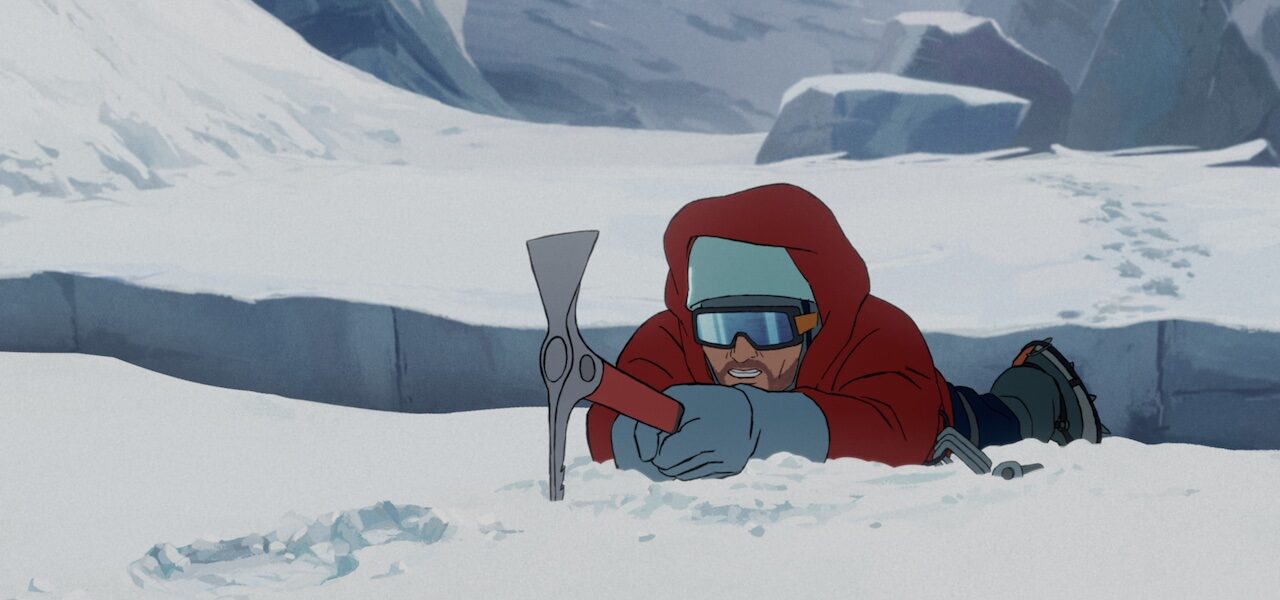 The film’s beautifully painted mountains are particularly striking, and the climbing sequences are among its standouts. Live action has nothing on the way these scenes convey both the majestic scale of the peaks and the technical skill necessary to attempt these summits (as well as the physical toll involved). The quiet, sublime moments the film captures as it pans over facets of the imposing Everest also offer a clue into why these mountaineers might be drawn to climbing without downplaying the danger involved.