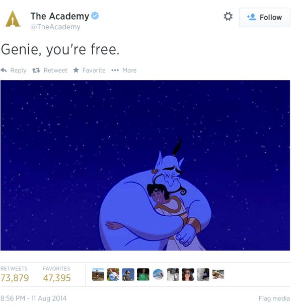 UPDATE #2: The Academy of Motion Picture Arts & Sciences referenced Williams’ role as the Genie in their condolence tweet: