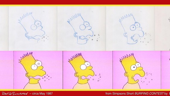 Just spoke with the great David Silverman, and he informed me of an impressive milestone: today marks the 24th anniversary of production of The Simpsons. (The series of David’s drawings above are from the early Tracey Ullman Show episodes.) As he tweeted earlier: