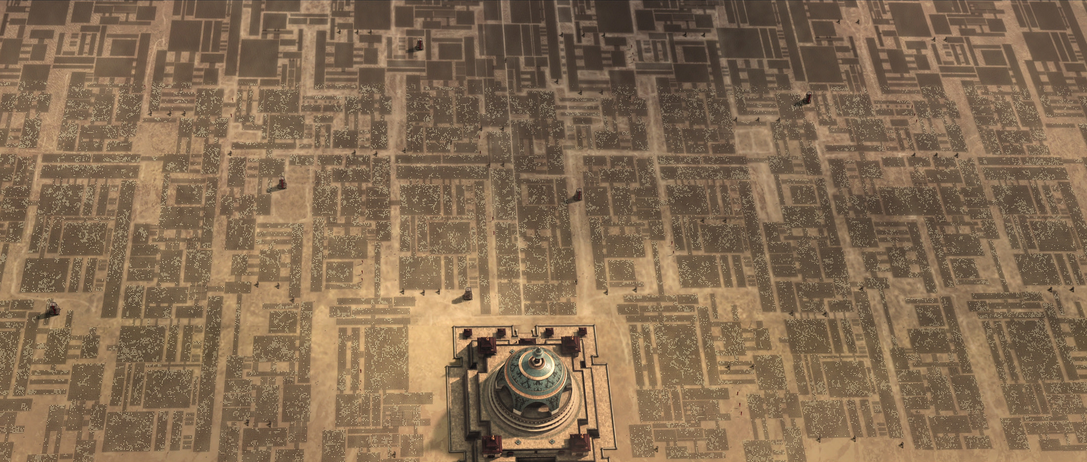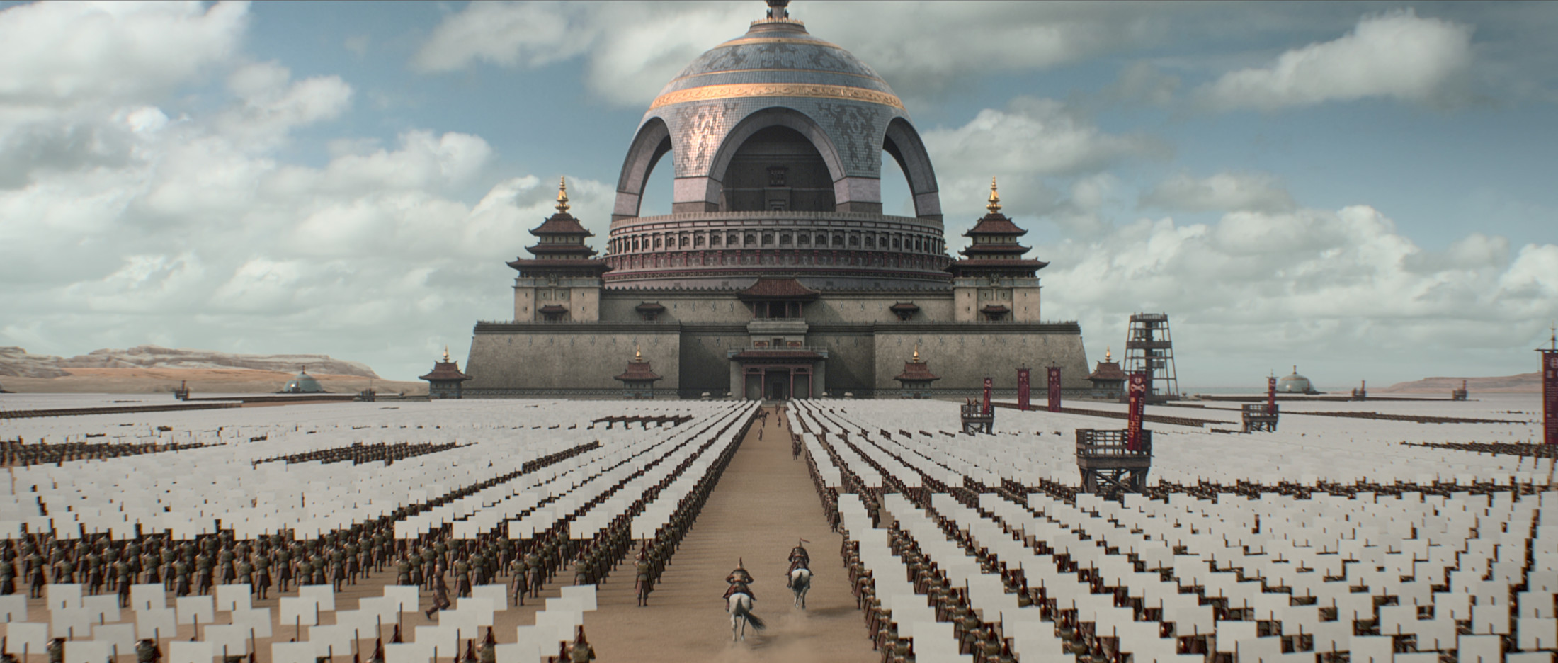 In level three, Jin and Jack visit a recreation of the Persian temple of Omar Khayyam (Jason Forbes) surrounded by 30 million Mongolian soldiers. Only 40 performers in costume represented soldiers on set. Scanline VFX created the entire environment.