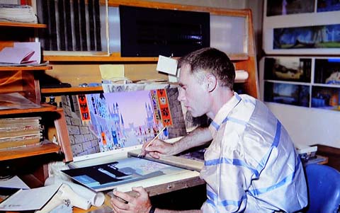 Around 1960, Eyvind Earle, the production designer of the Disney classic Sleeping Beauty, formed his own company Eyvind Earle Productions. The first spot he produced was this Chevrolet piece, which he made in two weeks. According to his autobiography Horizon Bound on a Bicycle, he was paid $16,000, which in today’s dollars would be around $122,000. That’s not bad for a one-man cut-out production, most of which was animated under camera.