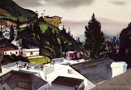 Hardie Gramatky (1907-1979), one of the great American watercolorists, actually started in animation working at Disney from 1929-1936. Joe Campana points out on his blog Animation – Who and Where that yesterday marked Gramatky’s 100th birthday anniversary. Besides painting and animation, Gramatky was also known for his children’s storybooks, particularly Little Toot, which was adapted into an animated segment for Disney’s Melody Time. An extensive bio and many of Gramatky’s paintings can be found at Gramatky.com, a site maintained by his daughter, Linda Gramatky Smith. More of his stunning watercolors can be viewed at CaliforniaWatercolor.com.