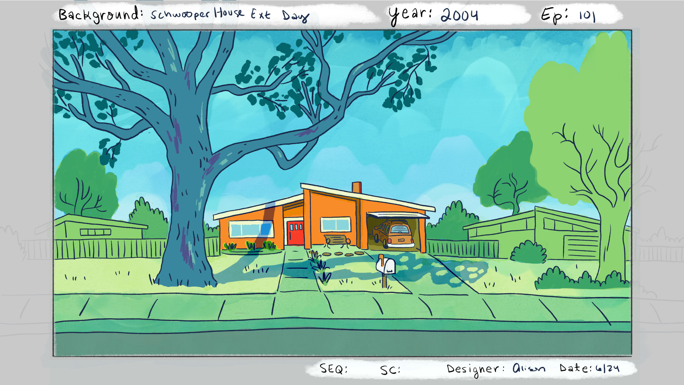 When I started concept art, I used a yellow rim light to capture the Bay Area weather and kept the backgrounds loose and washy, details suggested with scribbles instead of tight outlines. Alison took that and really ran with it. She’s brilliant at simplifying environments while keeping them artful, and she figured out efficient ways to handle difficult scenes, like crowds, without losing beauty.
