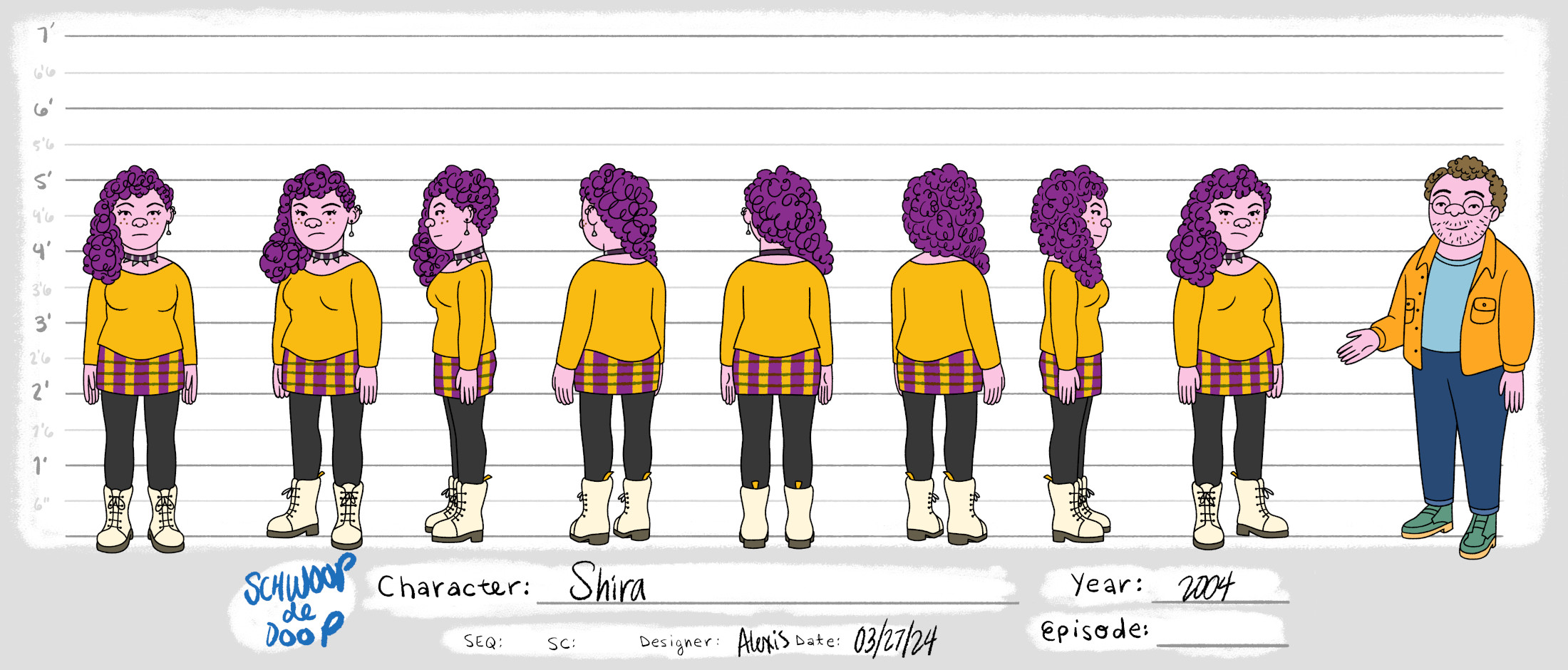 Fashion is also key. I thought about what I wore in high school, sometimes embarrassingly, and applied that to Shira. Each episode takes place in a different year, so it’s fun to think about their style journeys. What stays consistent? What changes? Did Avi buck trends? Did Shira experiment with hemp necklaces, like I did? Those choices make it feel specific and real.