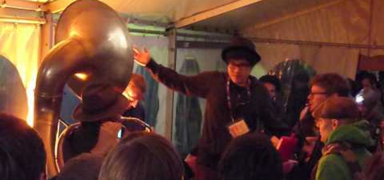 And here’s a video of him rapping in Chinese accompanied by Simpsons director David Silverman on the tuba: