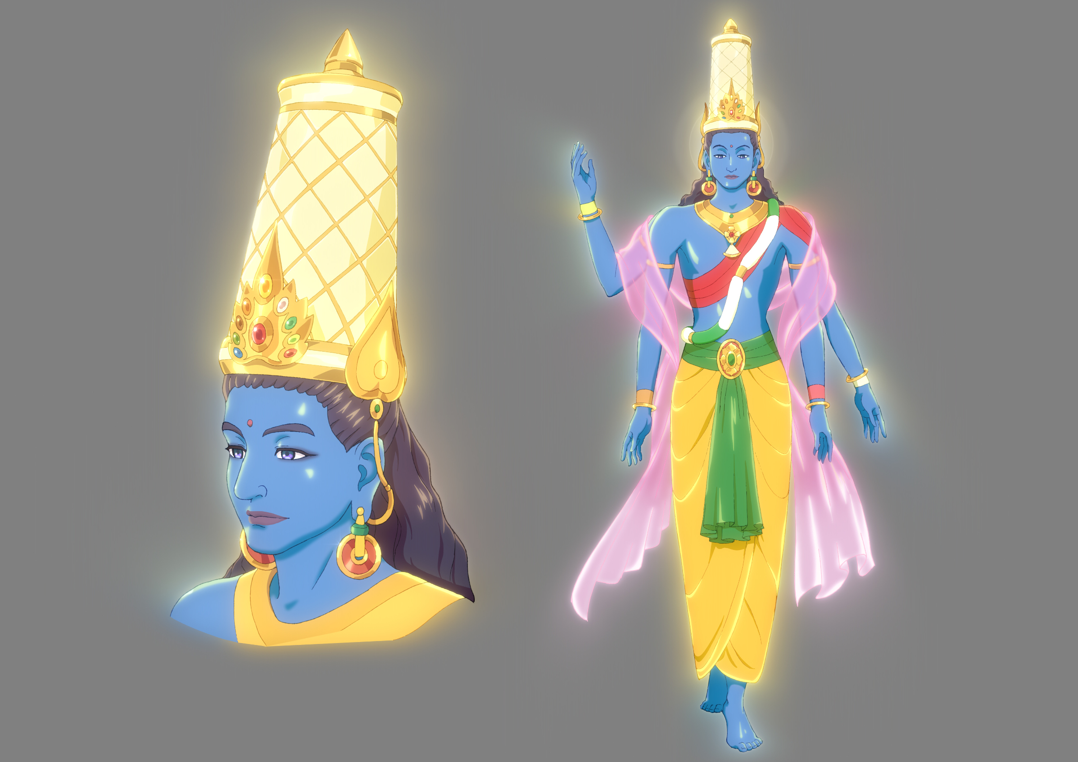 I referred to the song “Shambhala” [one of several written by Ryuho Okawa for the film]. According to this song, Shambhala is a place where only a select few can enter to go through disciplines, to raise the level of [their] enlightenment to go to a higher dimension. But Shambhala is a place in Mount Meru, where people from all over the world come together to go through disciplines to improve the world. Those who attend the coronation ceremony have gone through many disciplines. They are divine spirits, gathered to honor the great light of Earth. God Vishnu represents the different gods of India. I believe the spiritual center of the Earth protects us with great love to guide us. So, we included many practices to portray this great spiritual center.