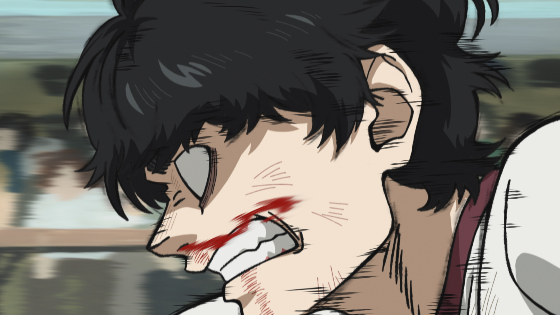 The one scene that really brought a new challenge to me was the rain scene, which is near the very end of the film. It was done with rotoscoping but from one single cut, where the camera pans and the racers are getting ready under the downpour. That was something I hadn’t tried before.