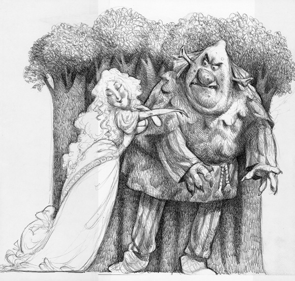 Shrek’s final designs didn’t reference Goodrich’s design work as strongly. Goodrich’s Shrek designs (along with William Steig’s originals and Mike Ploog’s development art for that matter) are all more funny and likable than the designs the film ended up with.