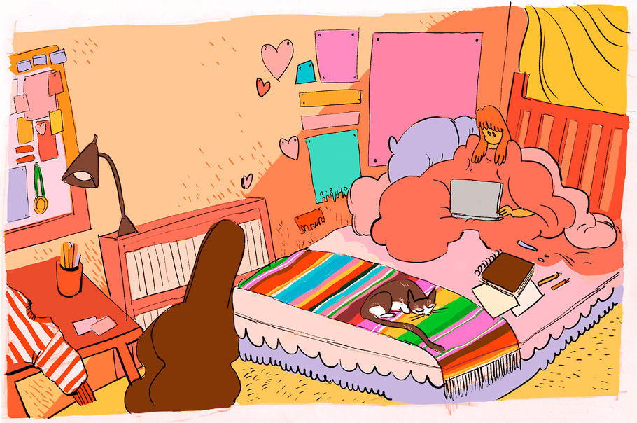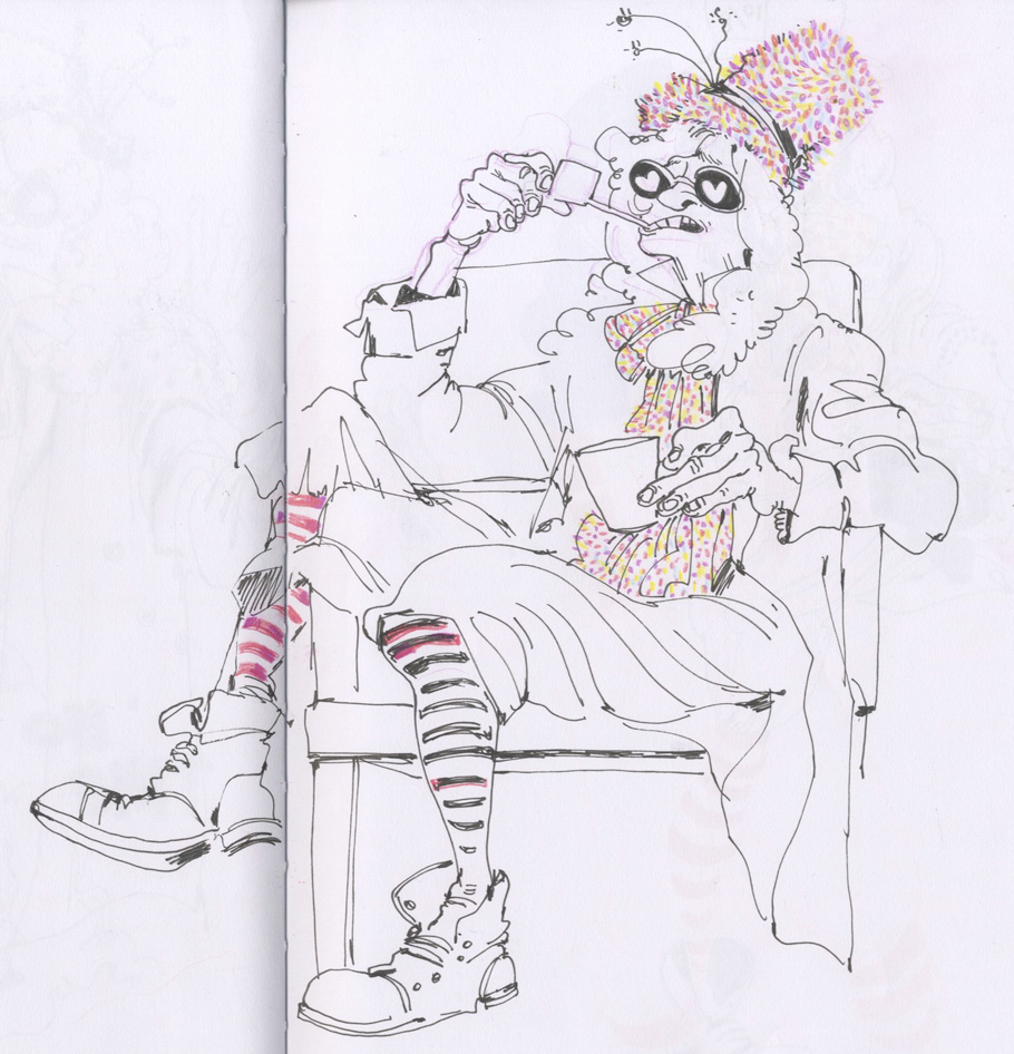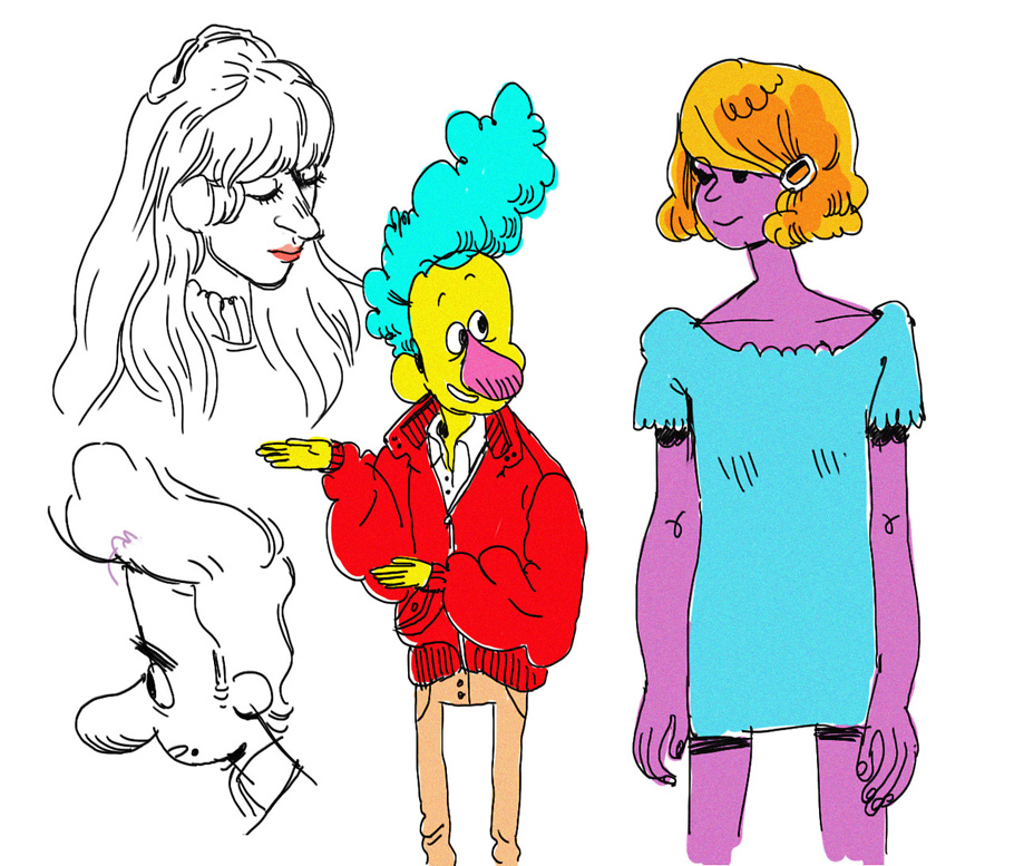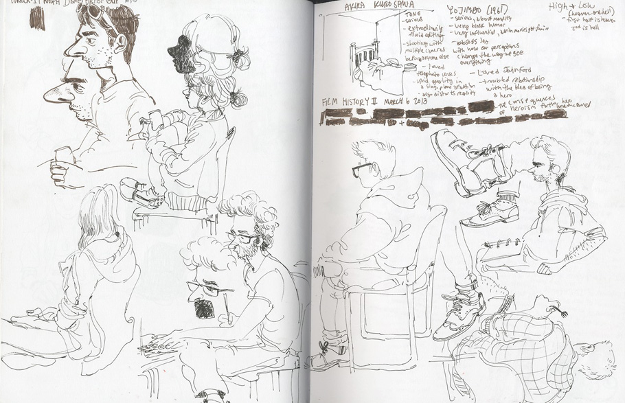 Second-year CalArts student Citlalli Anderson draws funny cartoons and shares her school work, doodles, and notes, including items such as this sketch for a school layout assignment: