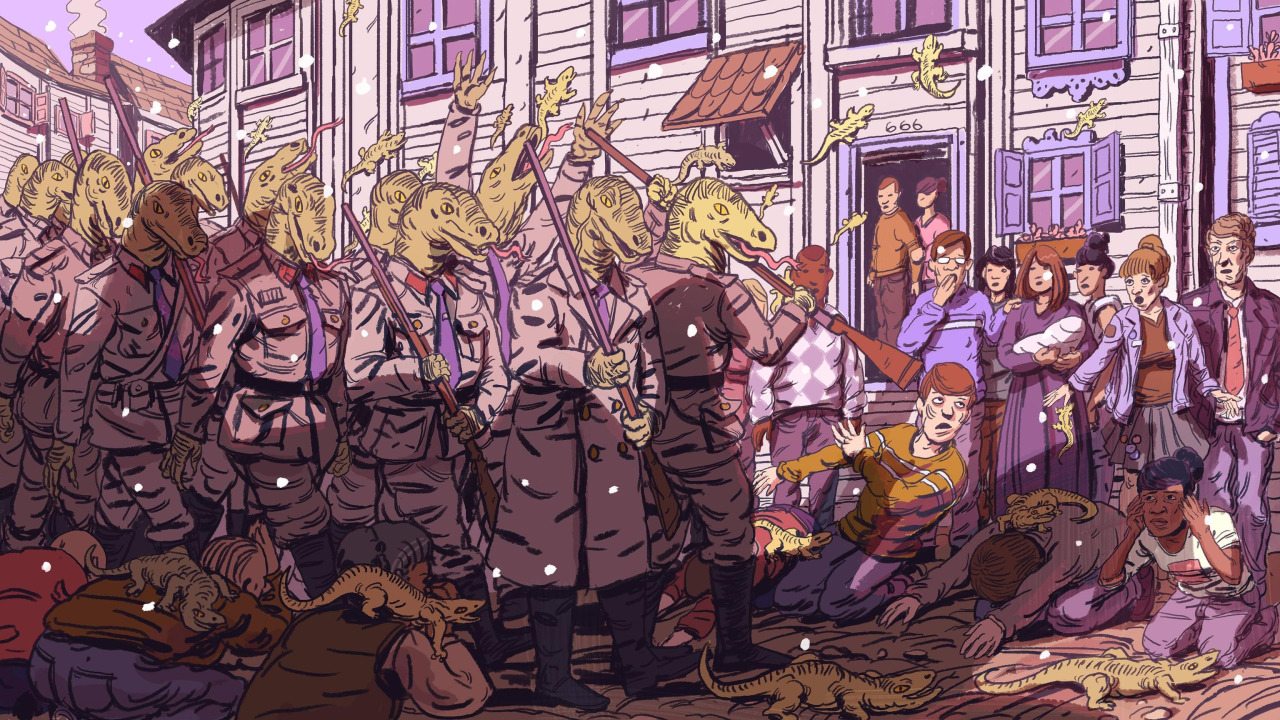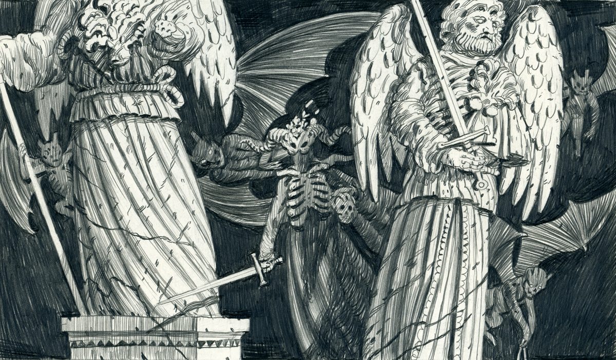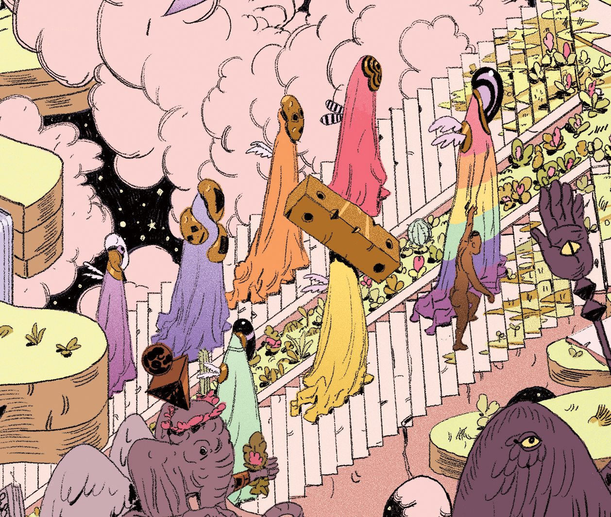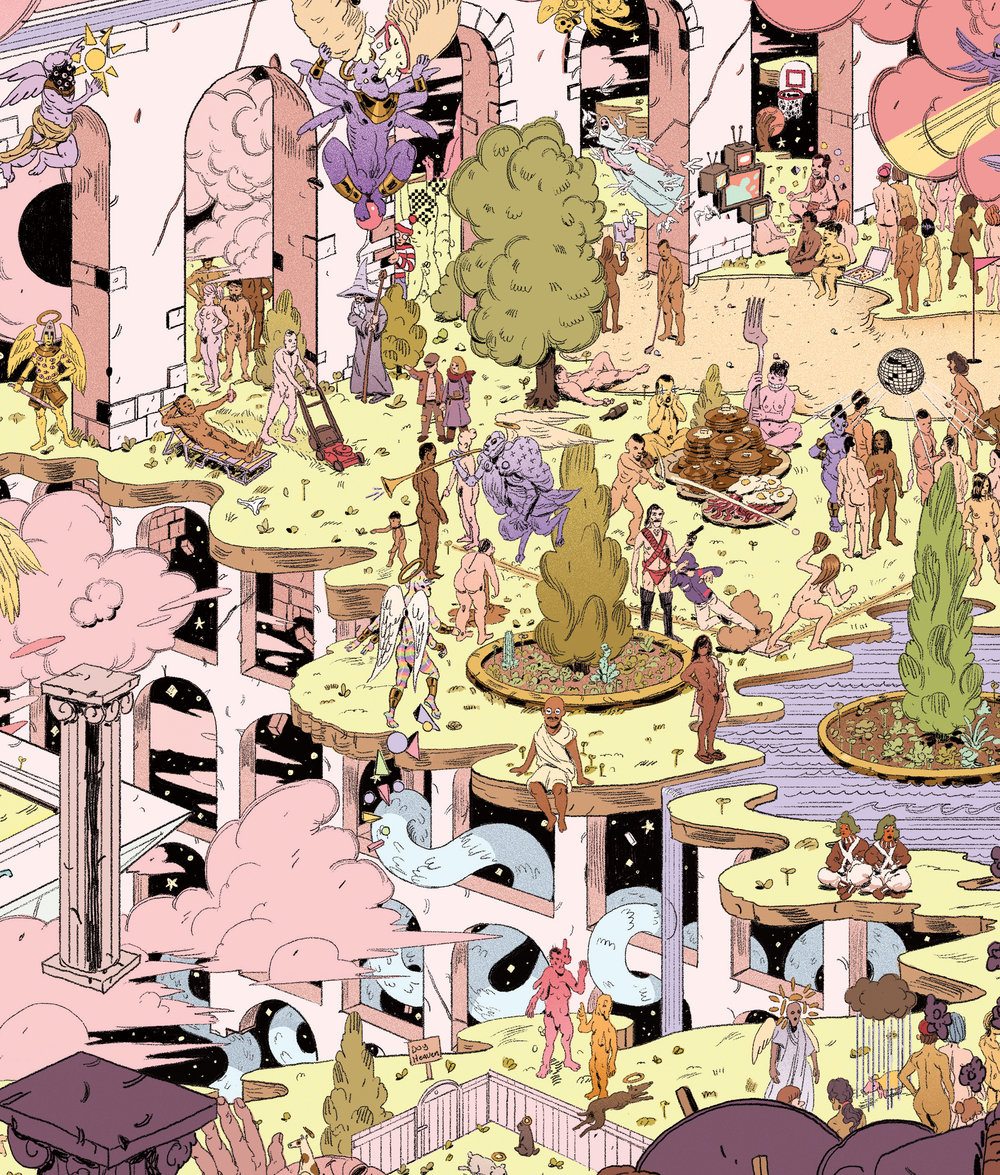 Two giant six-foot Where’s Waldo-style illustrations of heaven and hell for Cards Against Humanity