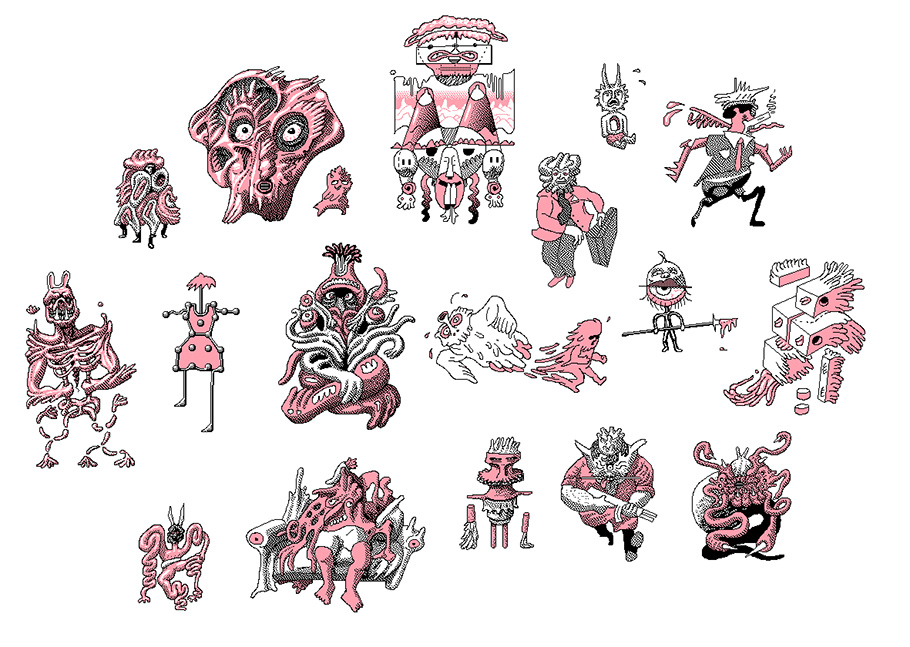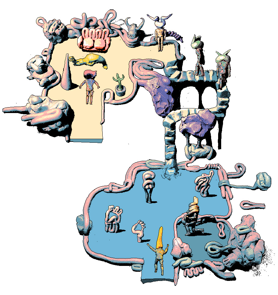 Digital, photography, modeling clay, pencil, ink, acrylic