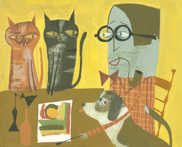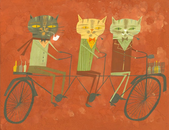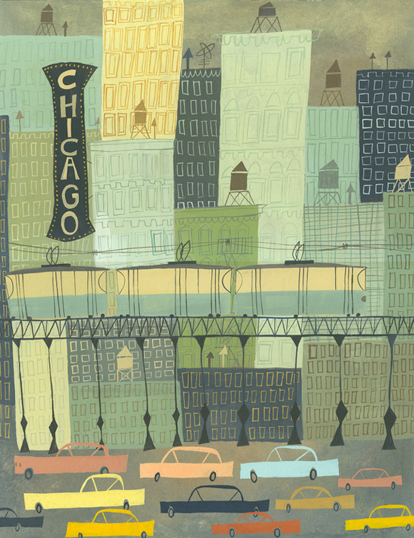 Matte Stephens is an artist based in Peterborough, New Hampshire who paints in a style that is influenced by, in his own words, “mid 20th century industrial and graphic design like the work of Charles and Ray Eames, Alexander Girard, George Nelson/Irving Harper and fine artists of the same era like Ben Shahn and Paul Klee.” Stephens works mainly with gouache as his paint of choice, and uses an earthy color palette and simple painted textures and patterns that transport the viewer to a bygone era. See more work from Matte on his blog and Flickr.