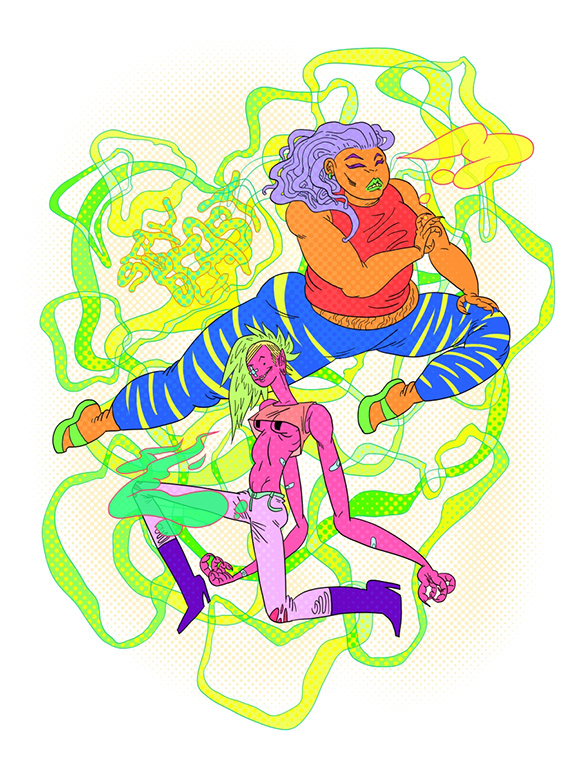 Brush, sumi ink, Fudegokochi brush pen, digital [Manga Studio, Photoshop]