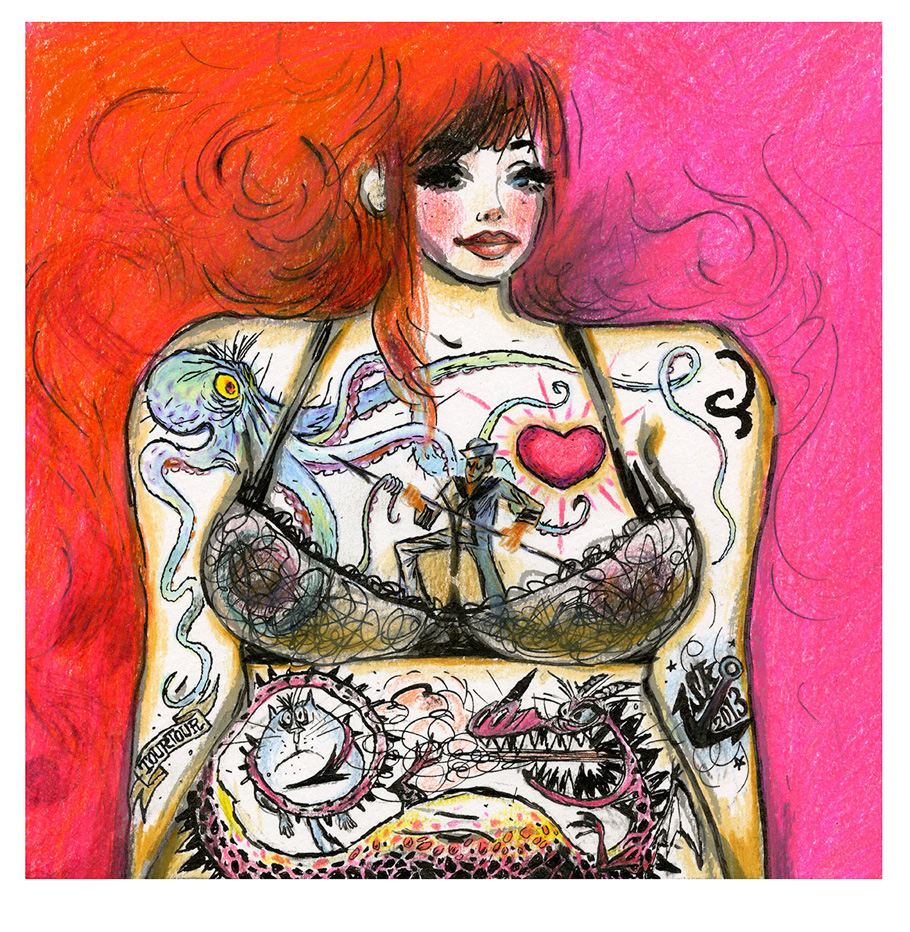 Brush pens, markers, color pencils, gouache, watercolor, digital