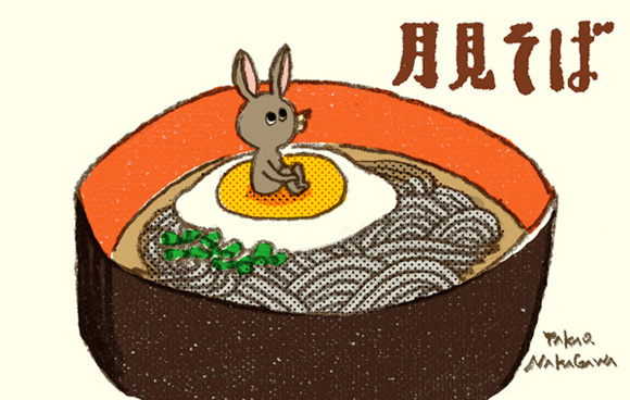 The quirky illustrations have a naive childlike quality in part lent from the materials used. Line art appears to be drawn in a waxy crayon, although it is becoming increasingly harder to tell when something is produced with a digital tool and when with a traditional one. These drawings are digitally colored and designed with a retro-print quality that has generally limited, flat color areas. Digging back in Takao Nakagawa’s Flickr collection of artwork, you will also find sections of work drawn in pen-and-ink washes painted onto canvases.