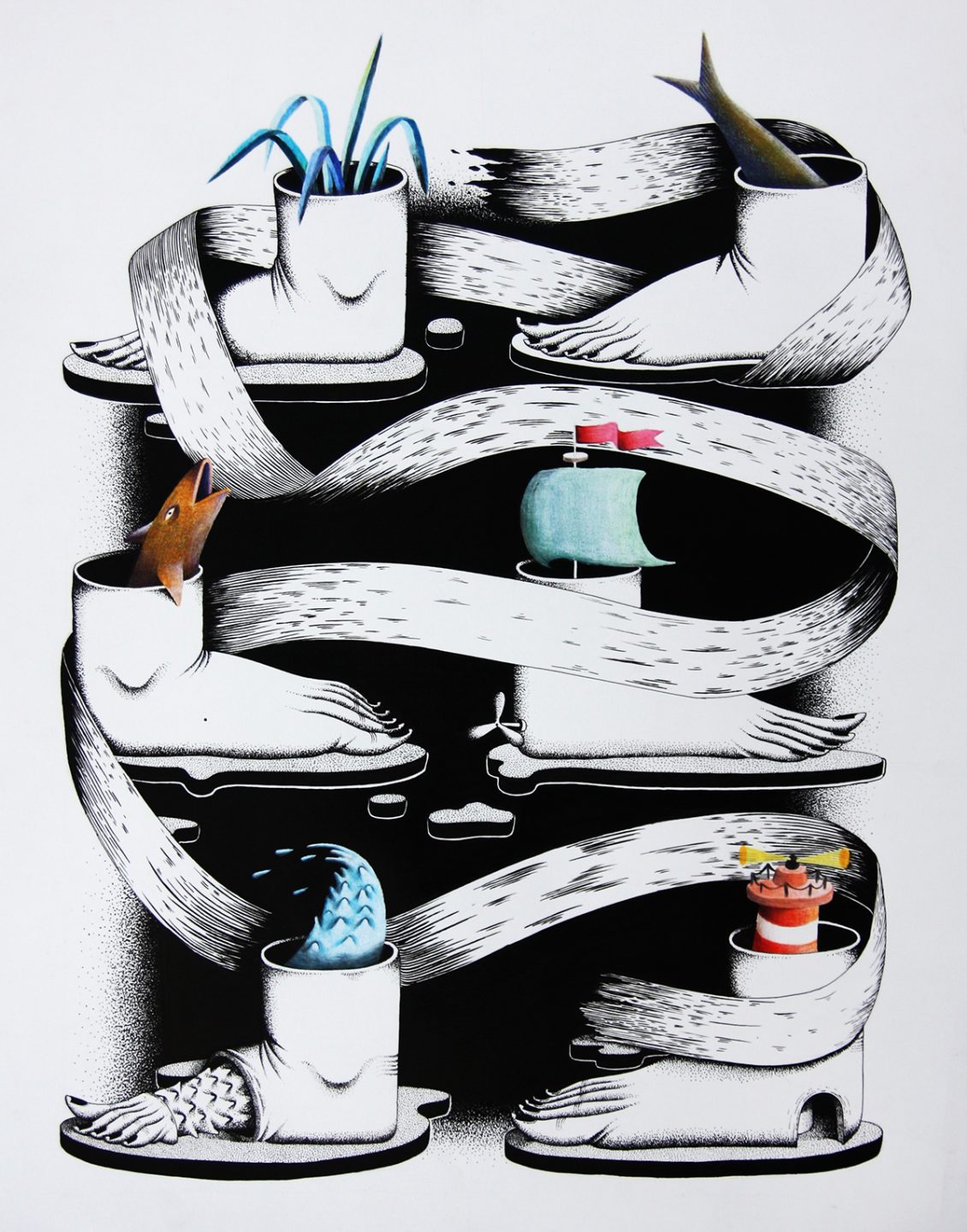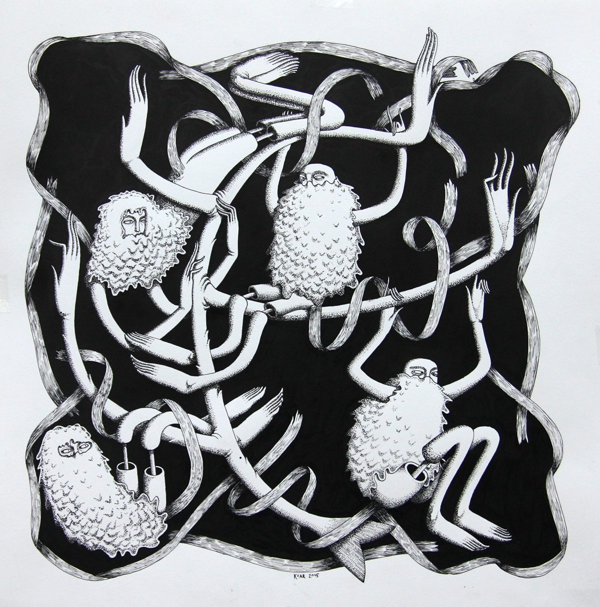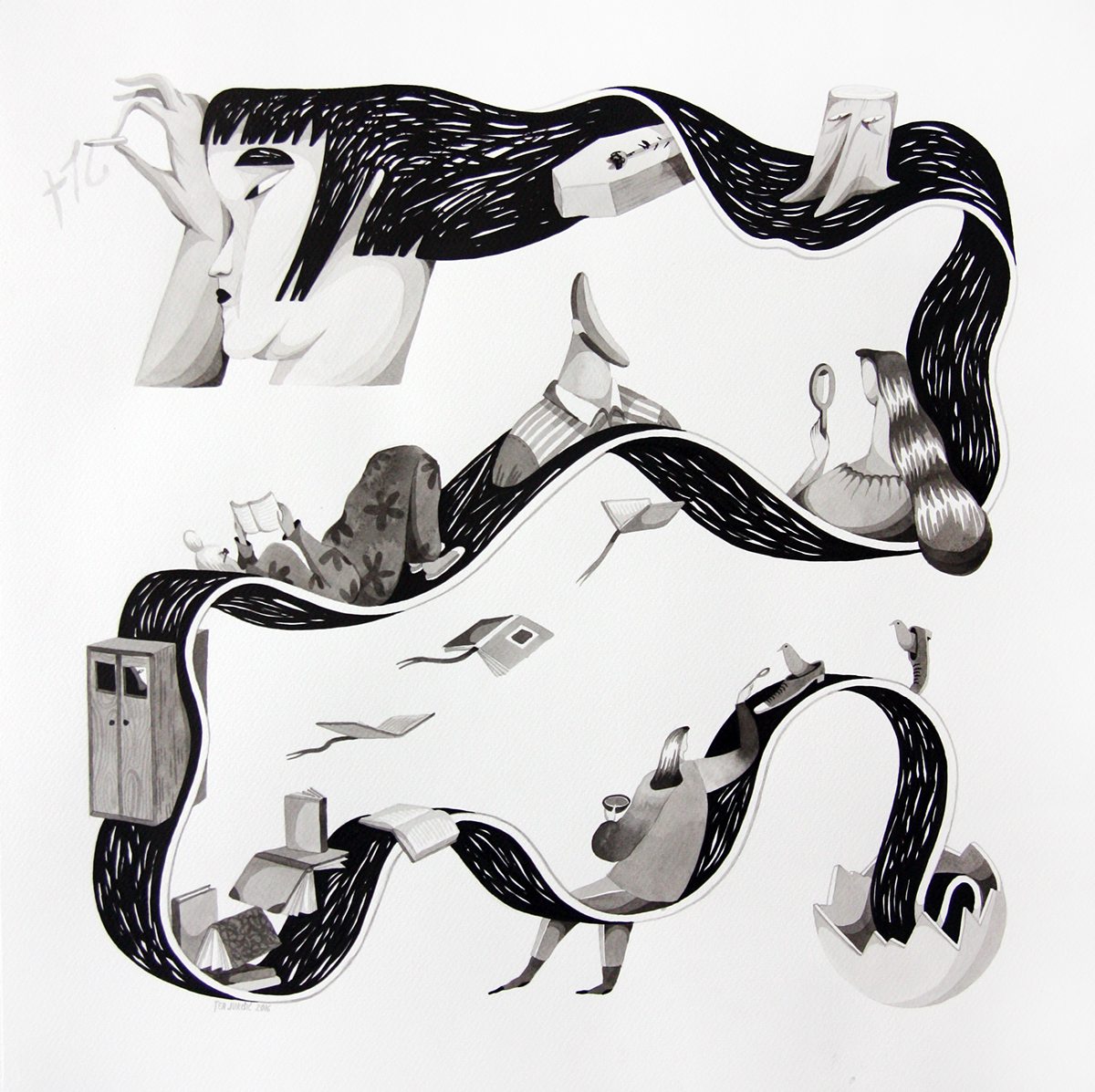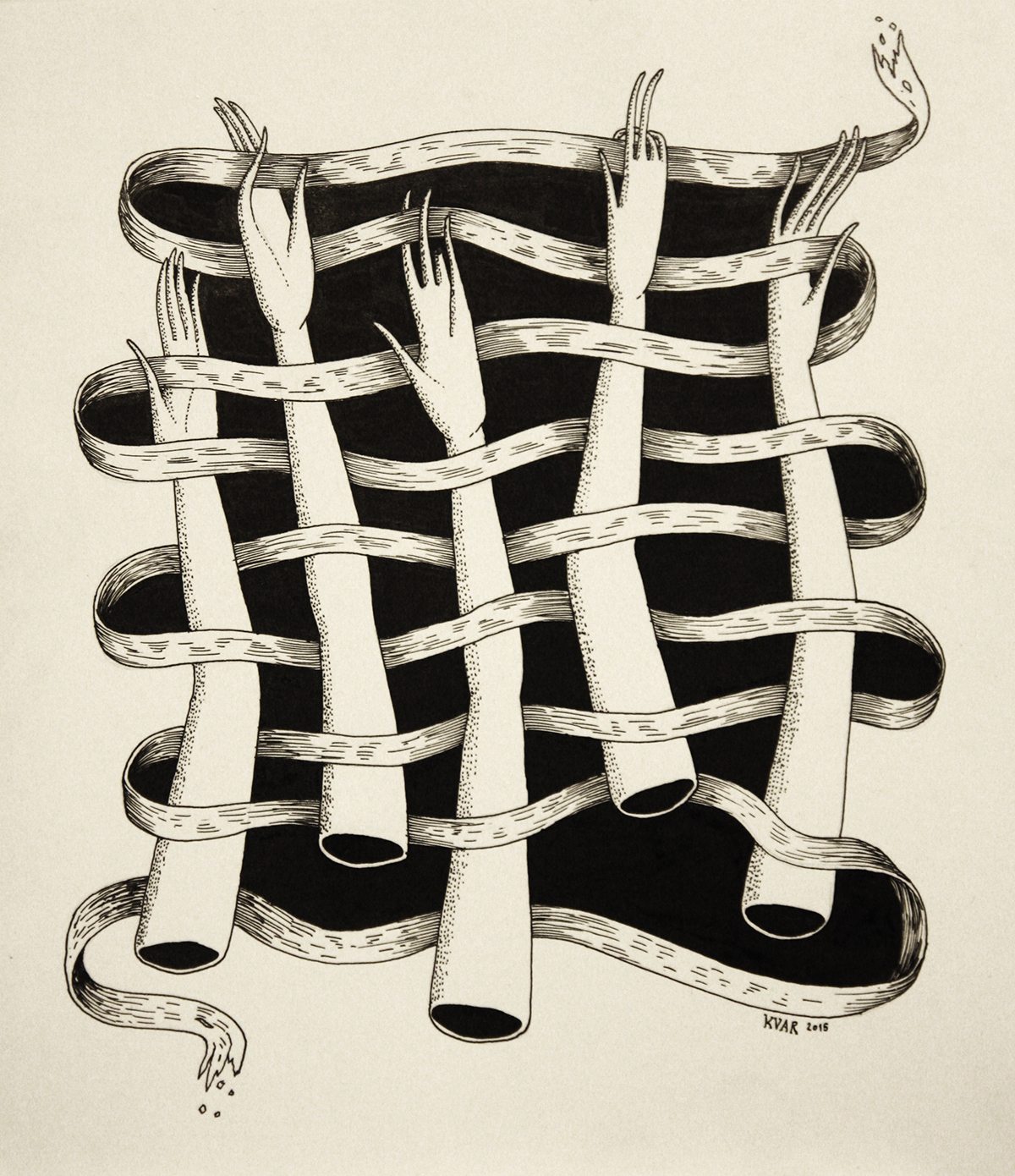 “Dragged through the hedge backwards” series of ink drawings based on a dream