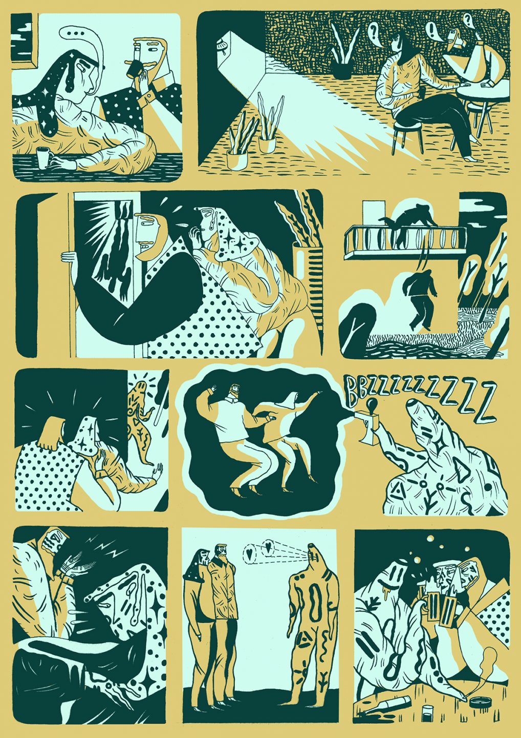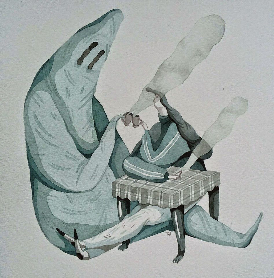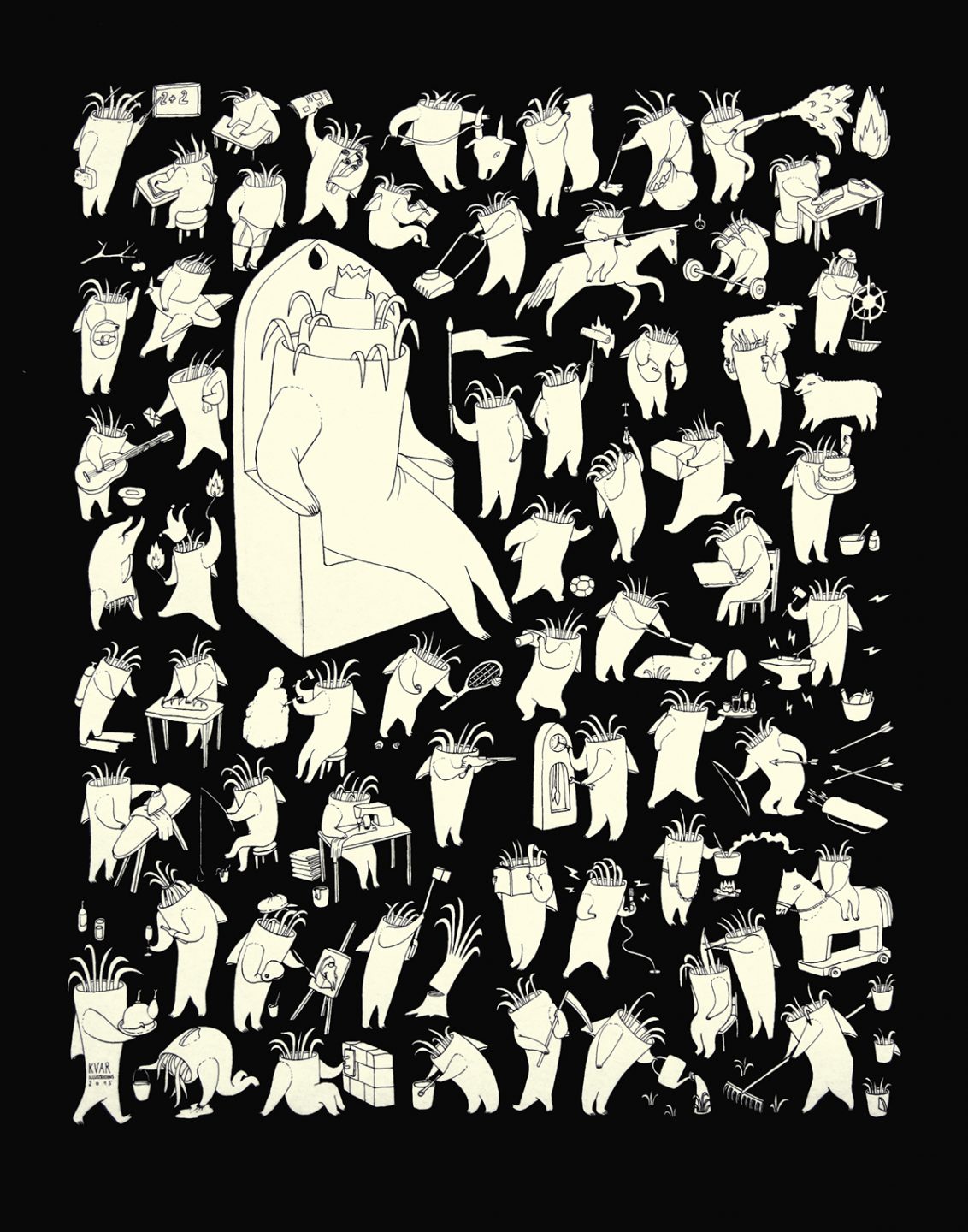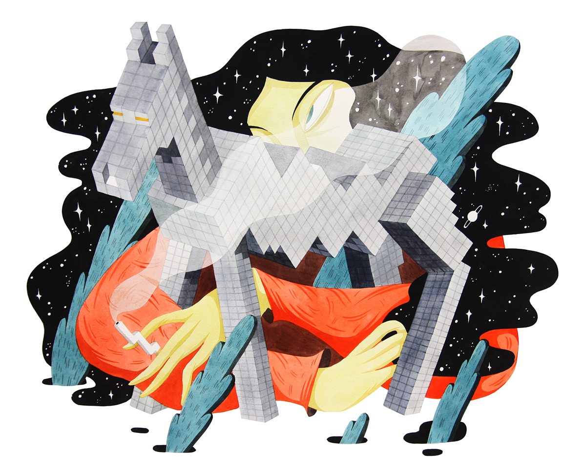 “Dragged through the hedge backwards” series of ink drawings based on a dream
