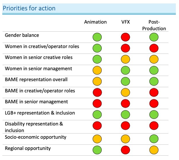 These figures outstrip the 14% figure for BAME representation across the U.K.’s working-age population. In London, where the vfx industry is concentrated, that number is 40% — but, as the report points out, vfx companies recruit globally, not locally. Factoring in the regions from which employees are recruited, the report concludes that the vfx sector exceeds the target for proportionate representation of non-white people; animation and post-production narrowly miss it.