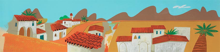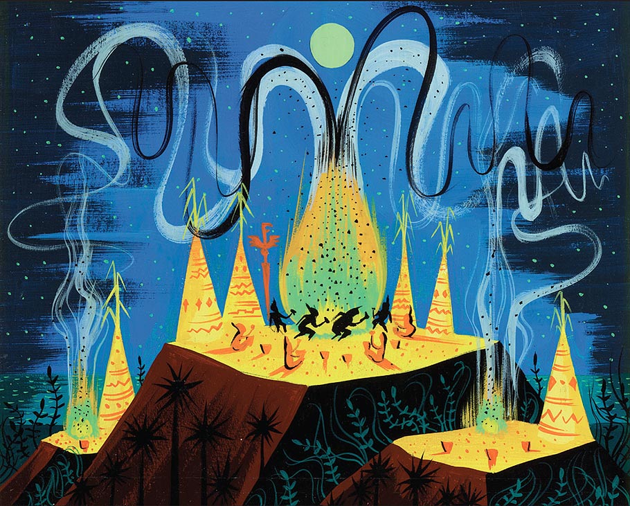 - Mary Blair concept painting of the “Indian Village” from Peter Pan.
