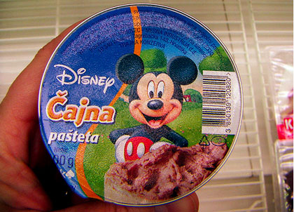 This was posted on Boing Boing but I couldn’t resist linking to it here. Mickey Mouse Liver Paste from Croatia. Yecch!