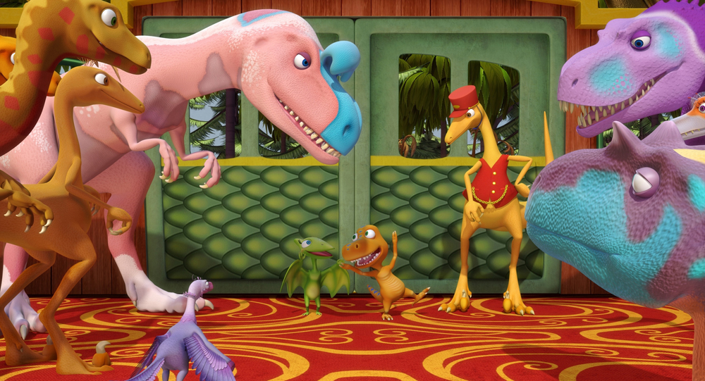 In Dinosaur Train, young viewers join Buddy and his adoptive family of Pteranodons, on whimsical adventures through prehistoric jungles, swamps, volcanoes and oceans as they discover basic concepts in natural science, natural history and paleontology. The Dinosaur Train, a colorful locomotive, is customized to accommodate all kinds of dinosaurs, and has the ability to visit the Triassic, Jurassic and Cretaceous worlds, while the Train’s Conductor, a knowledgeable Troodon, provides passengers with fascinating facts along the way.