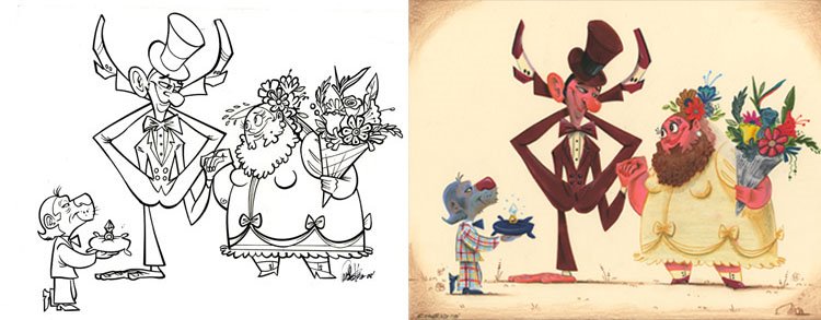 Click thumbnails below to see a gallery of just some of the images included in the book. These include the cover by Timothy Lamb, and art by Bill Kaufman; Conrad Vernon; Gérald Guerlais; Kirsten Kawamura; Matt Jones; Mike Lee; Peter de Sève; Shane Prigmore; and Willie Real. A complete list of all 66 contributing artists can be found here.