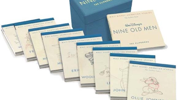 Tomorrow is the official release date of The Archive Series–Walt Disney’s Nine Old Men: The Flipbooks. It’s a pet project of UP director and flipbook aficionado Pete Docter and it’s packaged as a boxed-set of nine flipbooks, like this: