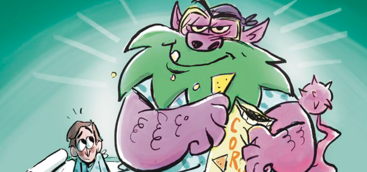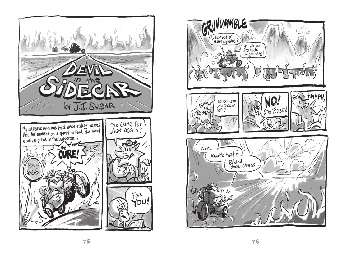 “The way in was to turn my disease into a character,” he says, an “annoying, chaos-causing biker beast from my bowel who is determined to derail my dreams!” That creature became Norm, the loud, overbearing embodiment of J.J. Sugar’s Crohn’s, and the book’s creative engine.