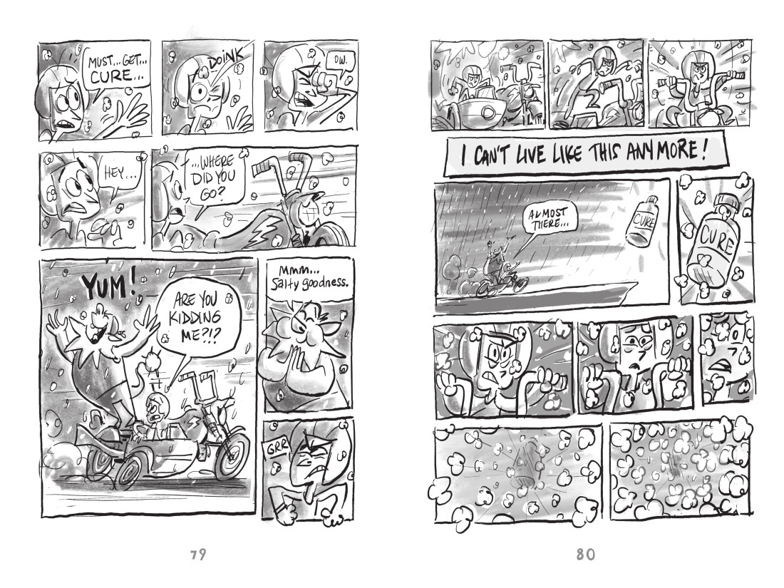 The decision to personify the illness comes directly from Soren’s animation background. The art form excels at externalizing interior states, giving shape and behavior to abstract concepts. By leaning on that well-honed creative instinct, Soren developed a narrative that plays like an odd-couple buddy story between a kid and the chronic condition he’s desperate to hide. The approach also opened the door for a supporting cast of other invisible disabilities. “Their humans refuse to acknowledge their existence,” he explains, “so, deep down, they all just want to be seen.”