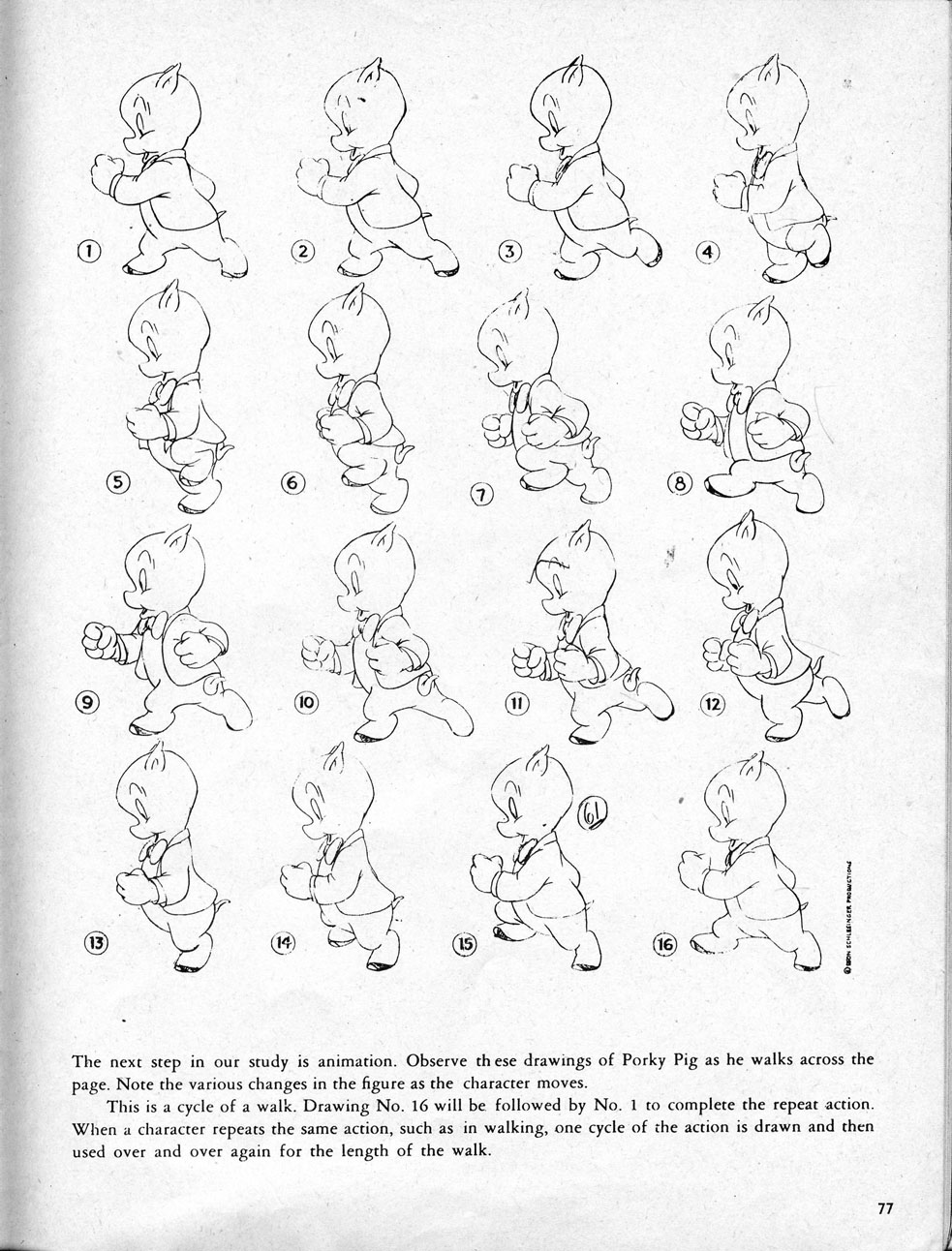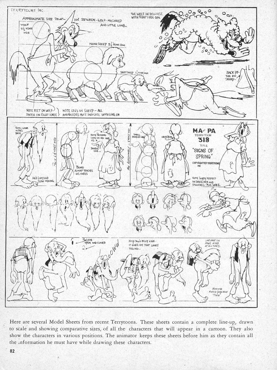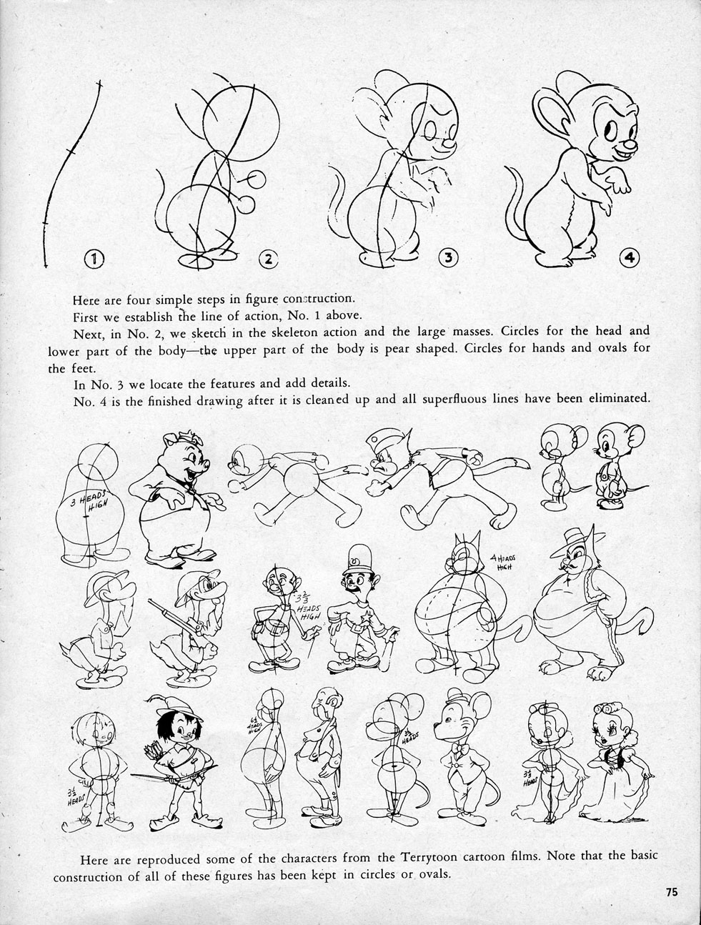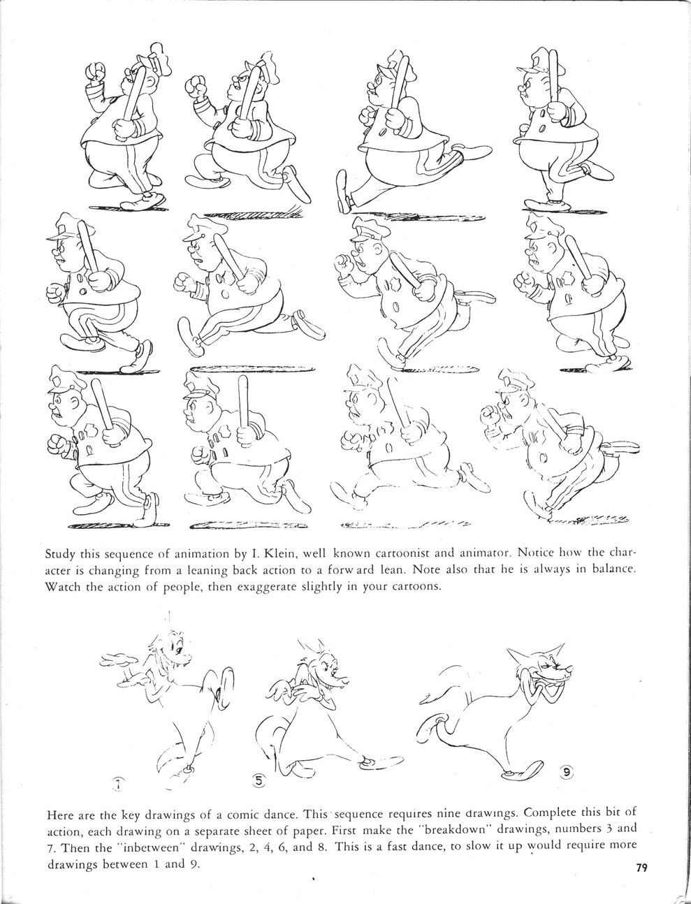I could have sworn someone would’ve posted the animation section from Alan Dale Bogorad’s 1943 book Jr’s Fun To Draw by now. When comics/animation historian Mark Arnold offered to scan his copy (in better shape than my own) I jumped at the chance to put it here for posterity. This chapter was compiled by Nat Falk and is a companion to his 1941 How To Make Animated Cartoons, combining model sheets, storyboards and animation sketches from Terrytoons, Fleischer and Warner Bros. Click on thumbnails below for full size images.