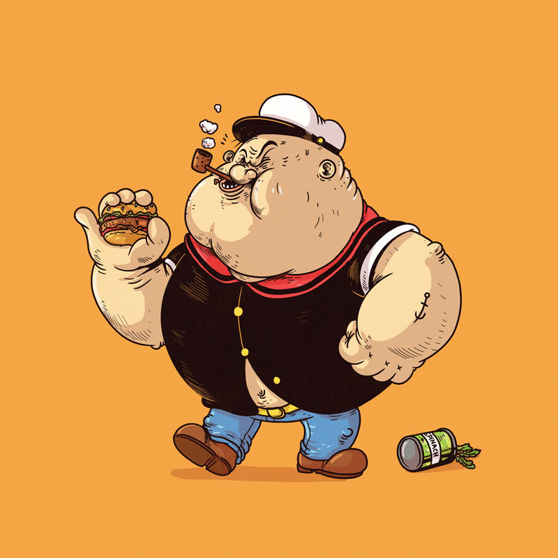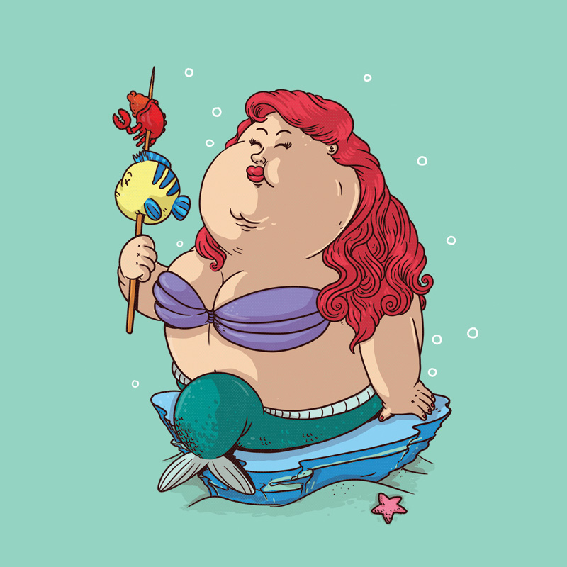 What if Popeye ditched his predominantly-spinach diet? What would the Ninja Turtles really look like considering their enthusiastic pizza consumption? What if Ariel discovered an appetite for seafood?